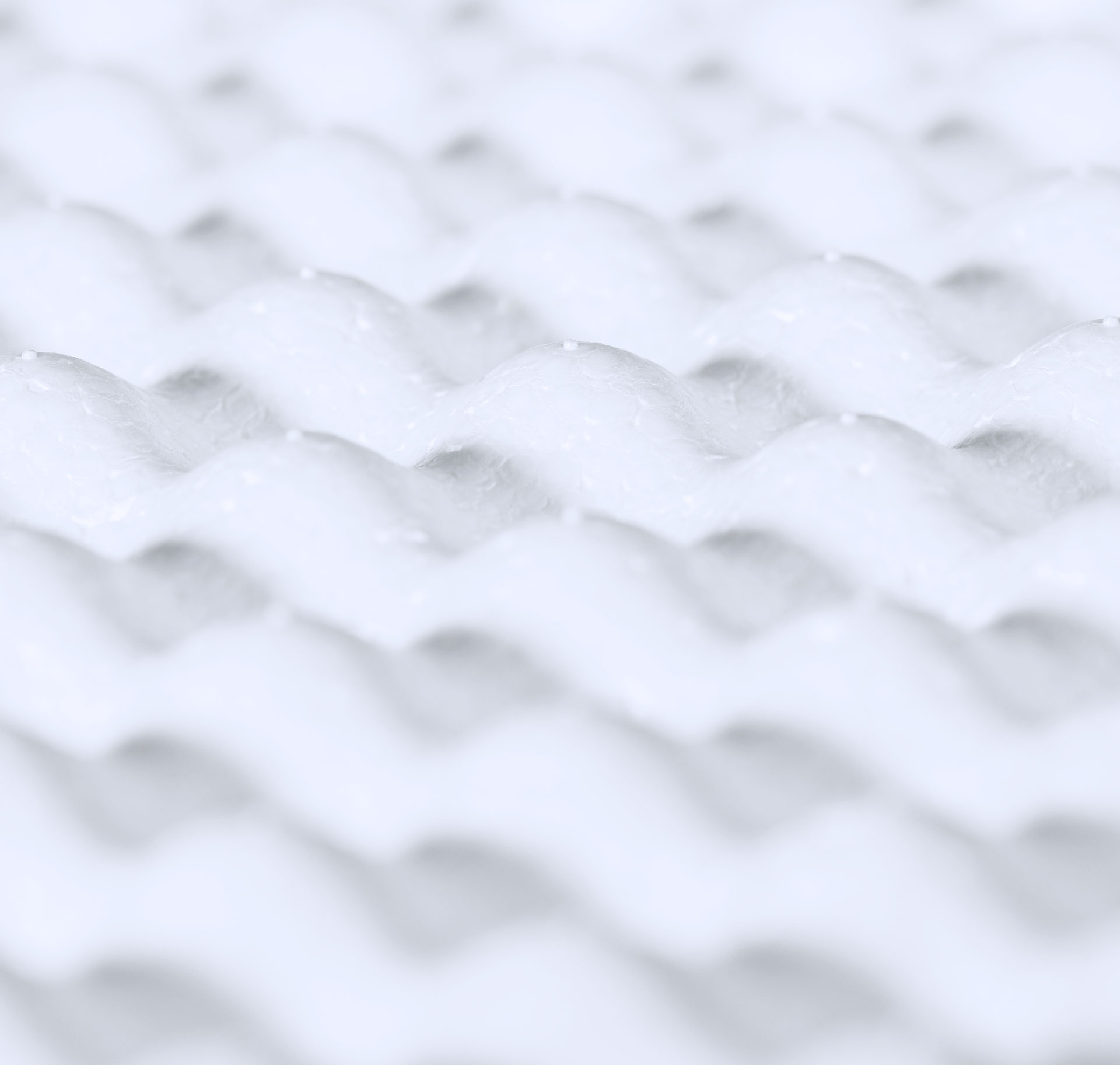 「エラスティル」が採⽤されたのは、機能⾯の優秀さに加えて、粒⼦径が⼩さいことが決め⼿となりました。「エラスティル」の発泡粒はとても⼩さく直径数mm程度。⾦型の隅々まで粒⼦を⾏き渡らせ成形することで、彫刻のような、より繊細で複雑なデザインを表現することが可能となります。